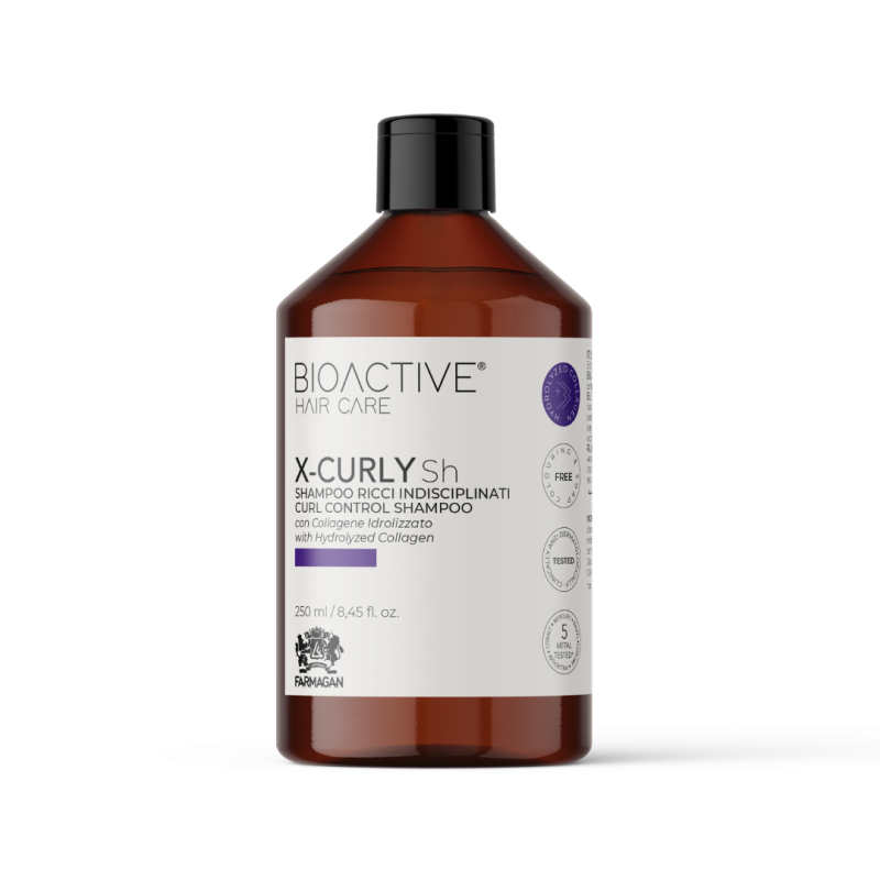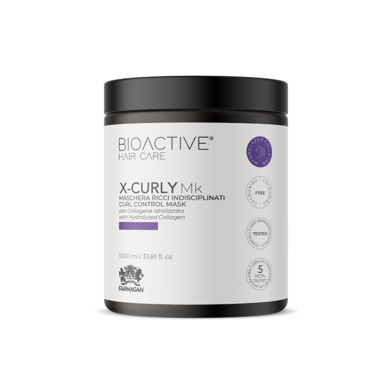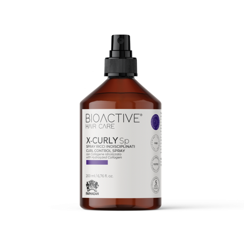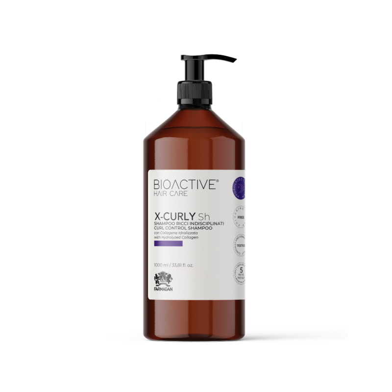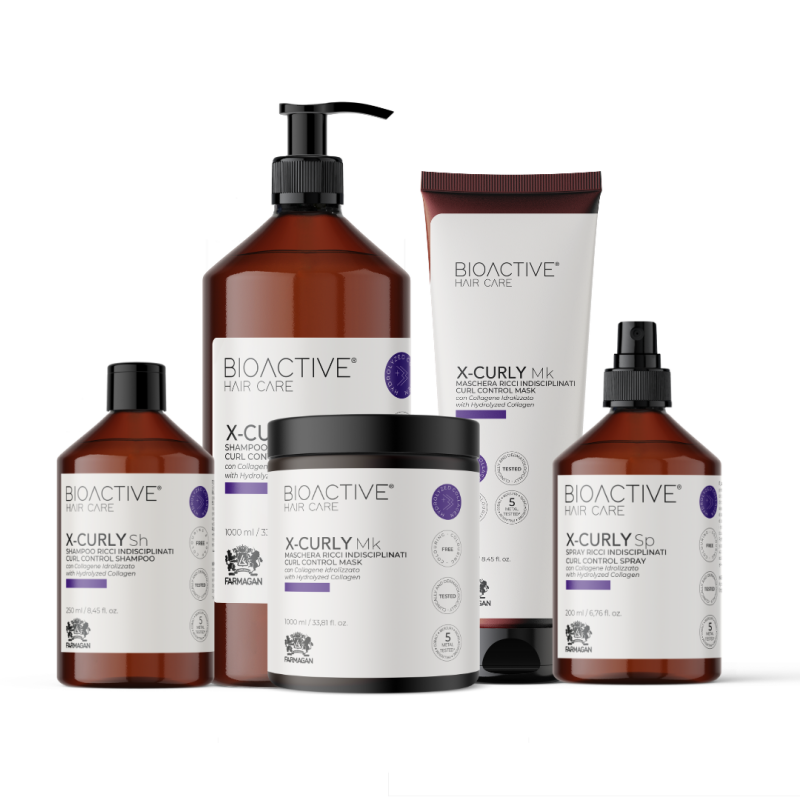 De Bioactive X‑Curly-lijn is ontworpen voor ongecontroleerd, golvend of krullend haar. Verrijkt met gehydrolyseerd collageen, biedt deze lijn diepe verzorging, definitie en frizz-controle.