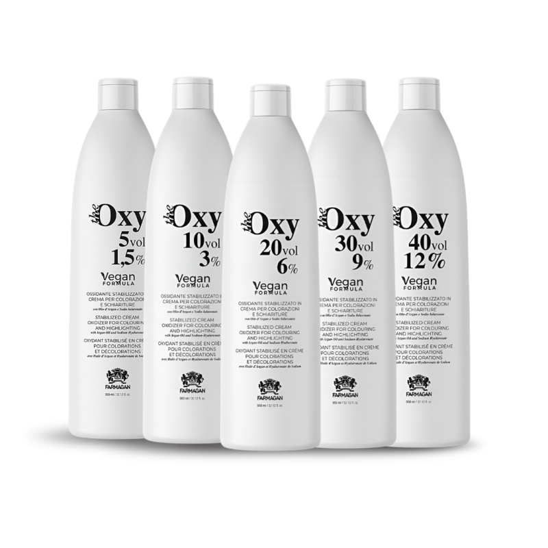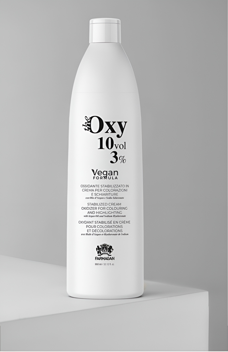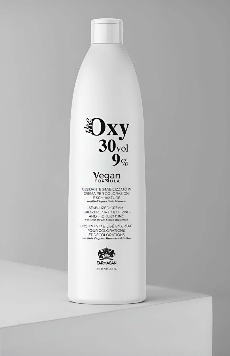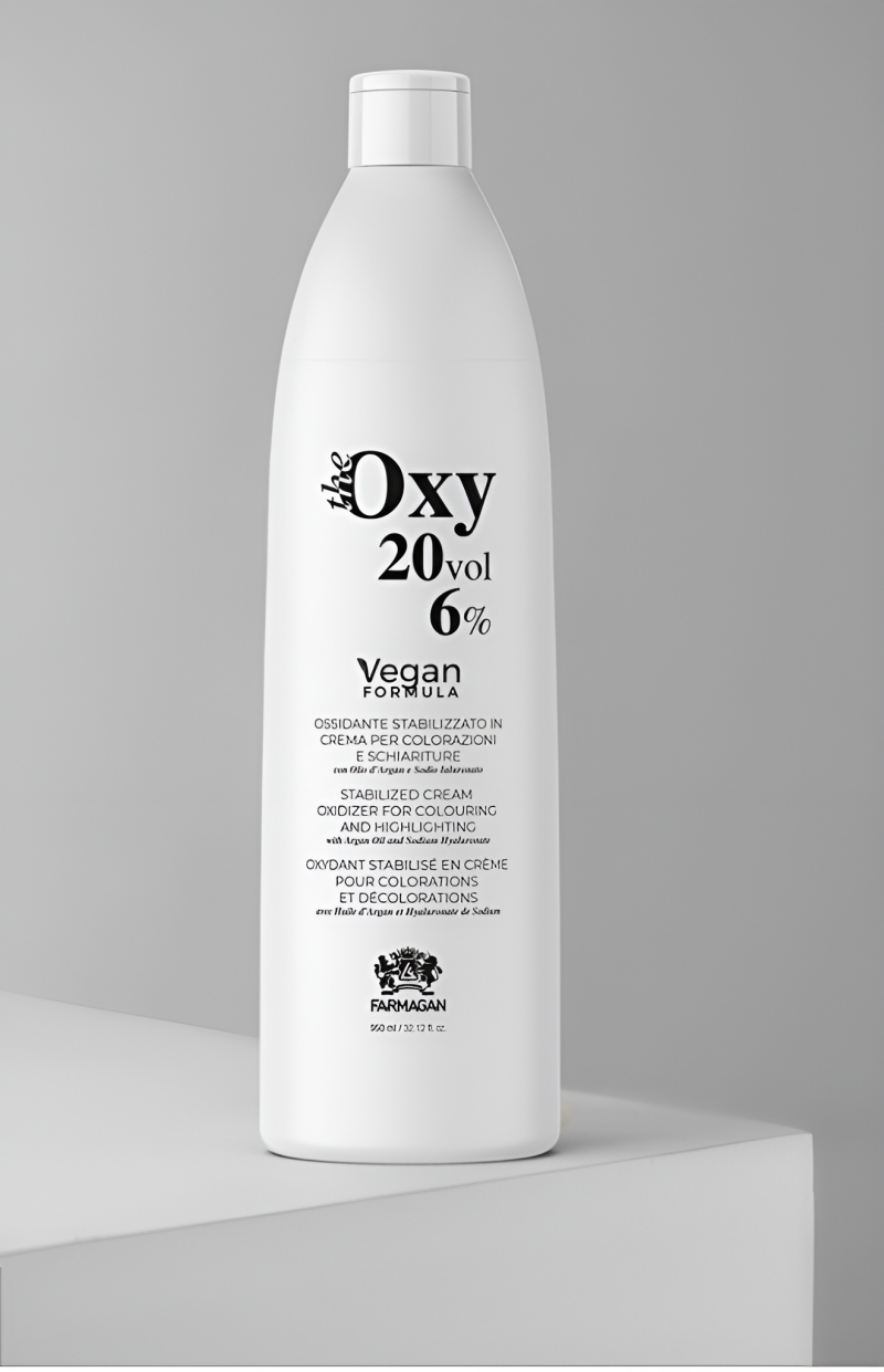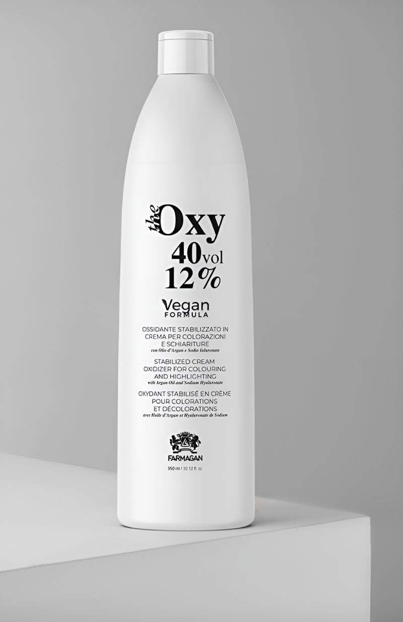 Meng de Oxy Crème-Oxidant volgens de Farmagan kleurverpakking. Volg altijd de voorgeschreven mengverhouding voor optimaal resultaat.